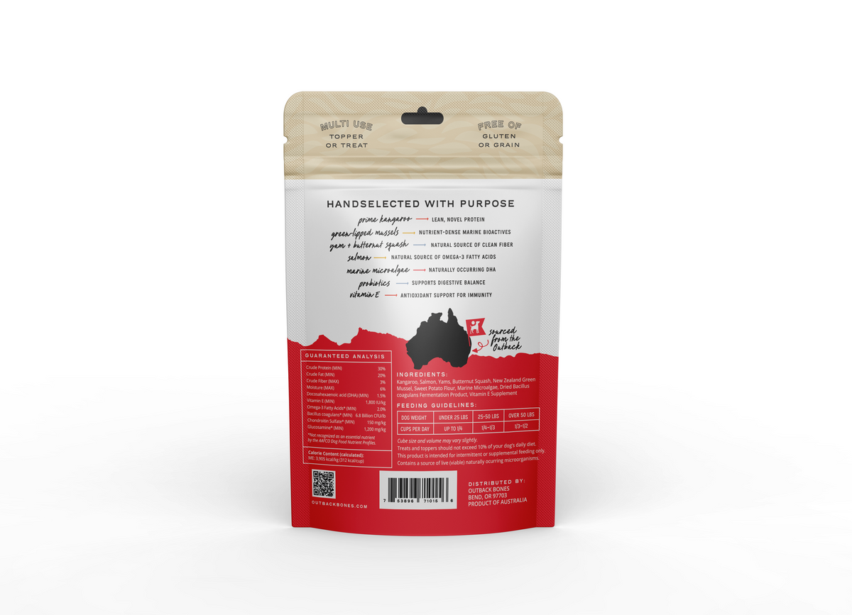 Crafted with lean kangaroo and functional superfoods, this topper delivers clean, nutrient-dense nutrition designed to support whole-body wellness.